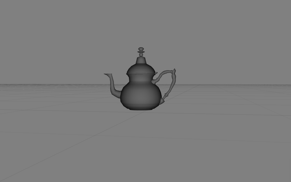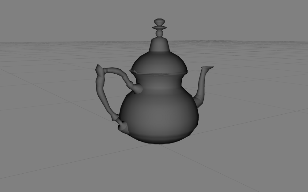 - The body and spout transition seamlessly with smooth curves, requiring careful subdivision and smoothing for a realistic result.